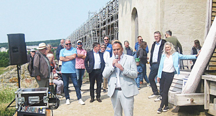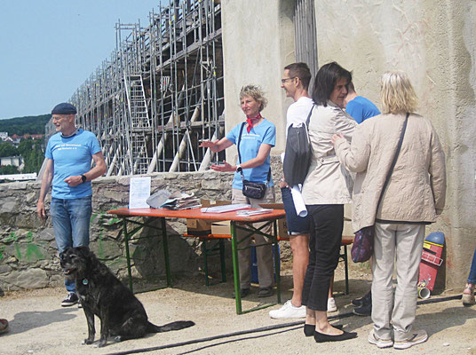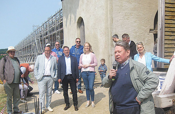 Die Denkmalschützer aus Berlin, Herr Alexander Gütter und Frau Anette Mittring, ebenso wie Frau Corina Sauerwein von der unteren Denkmalschutzbehörde des Wetteraukreises, zeigten sich beeindruckt von den bisherigen Instandsetzungsarbeiten und vom Bau der neuen Galerie.