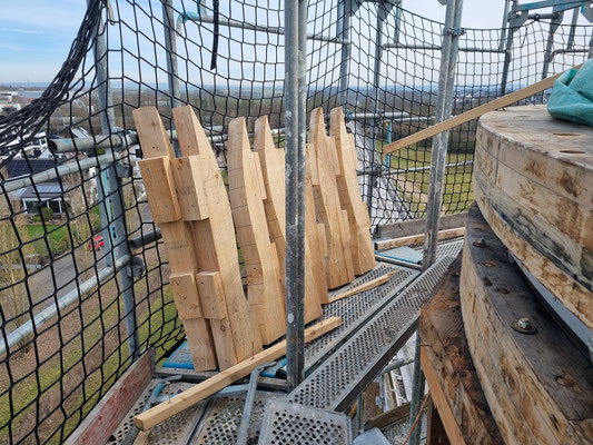 Und hier gibt es einen ersten Einblick auf die neue Kappe, wie sie gerade beim Mühlenbauer entsteht :-)