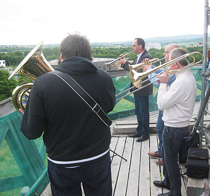 Wir hatten Besuch von der lokalen FDP. Interessiert wurde der Turm begutachtet und wir erhielten das Versprechen, dass man aktiv bei der Spendengenerierung helfe.